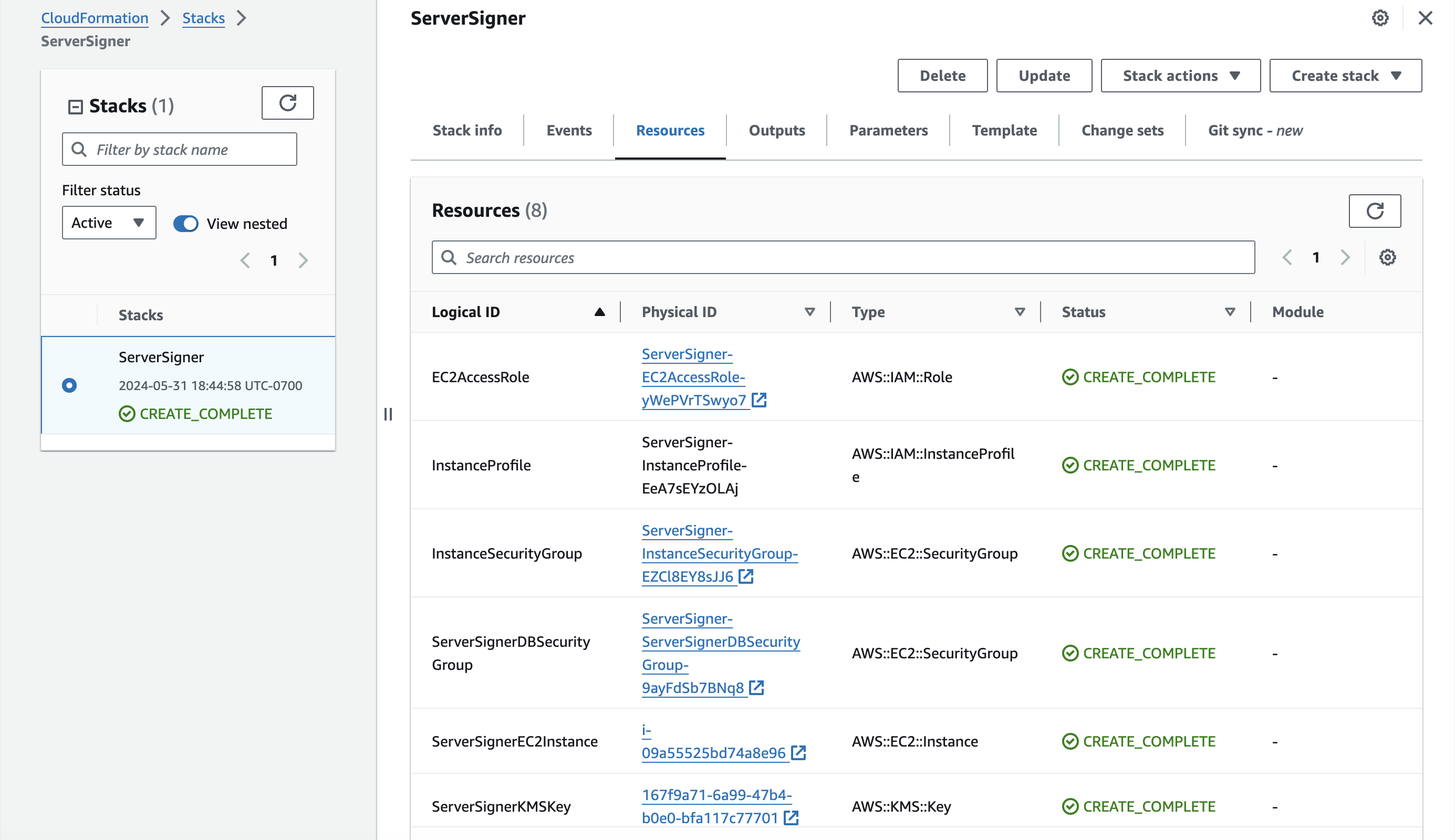 - Security groups and IAM roles for the functioning of the Server-Signer.