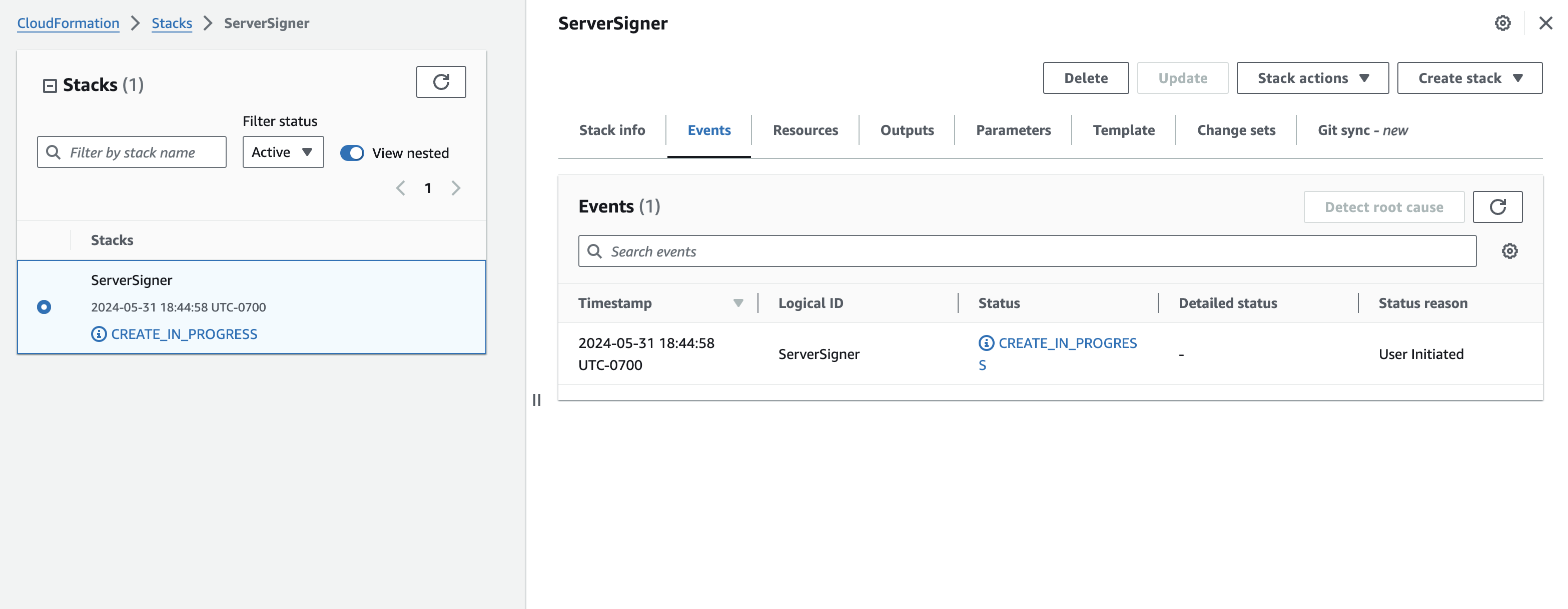 Since the Server-Signer provisions AWS resources, it generates AWS costs. You can use this AWS library to estimate the AWS costs, based on the CloudFormation template. The estimate provided is approximately $60 (USD) per month in the us-east-1 region, with the largest contributor being RDS usage. This is a baseline estimate, and your AWS costs for Server-Signer may vary based on your usage. Example cost estimation call to AWS:Deploy Server-Signer on AWS