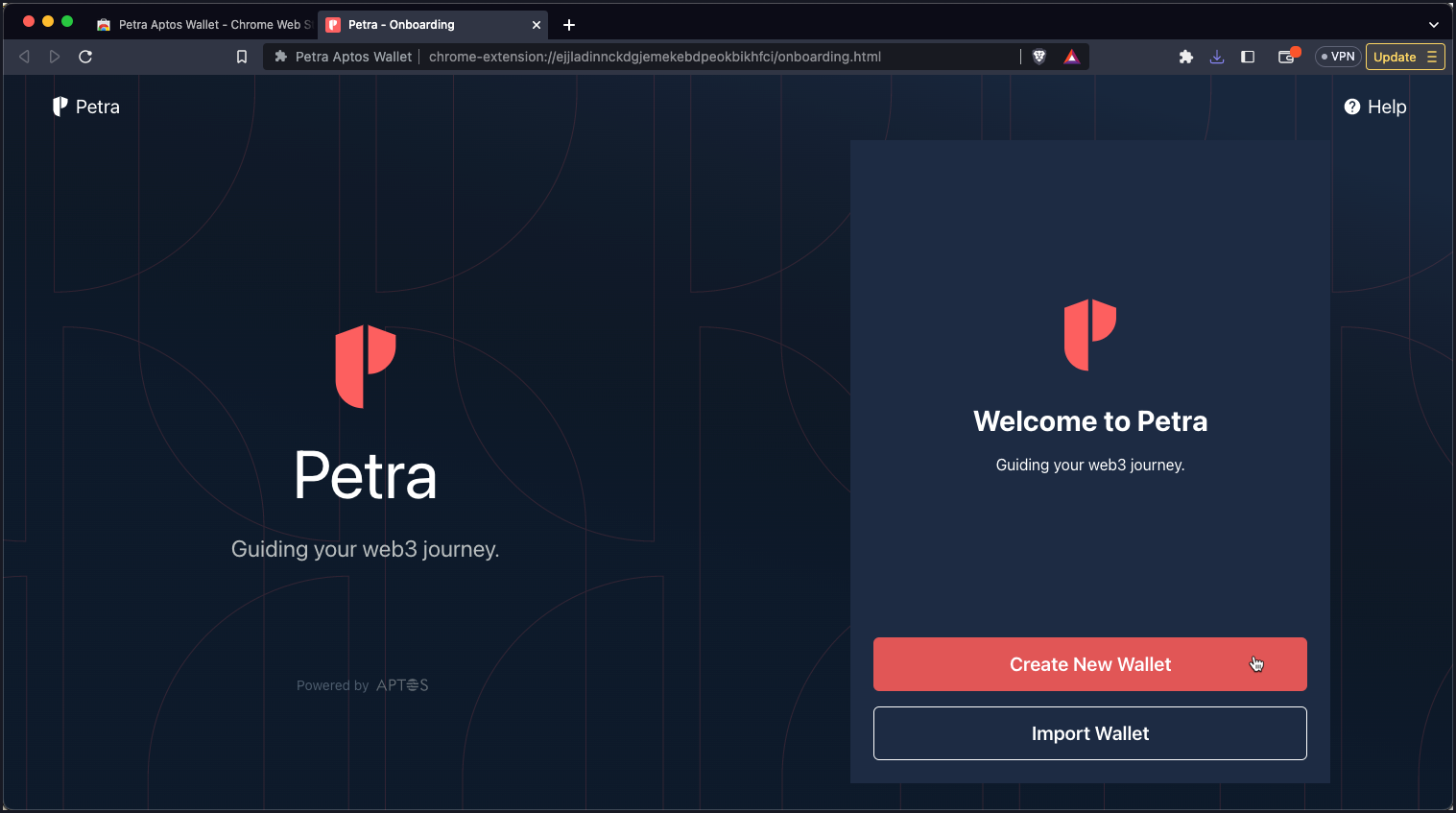 This section explains how to setup and fund a Petra Aptos Wallet. Click images to enlarge.- Download the Petra Aptos Wallet Chrome extension.