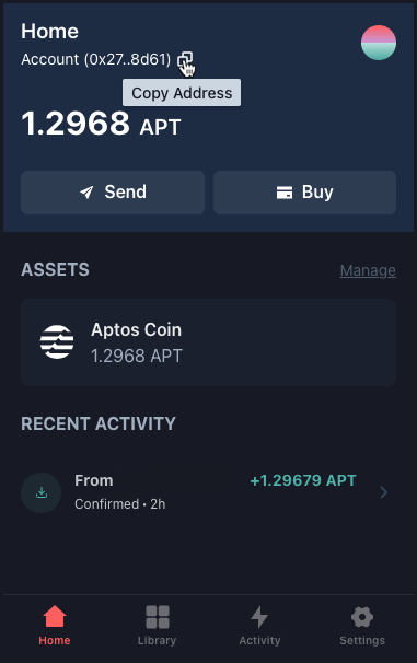 Open Petra (by clicking the Petra icon) and fund the newly created wallet/address with APT.