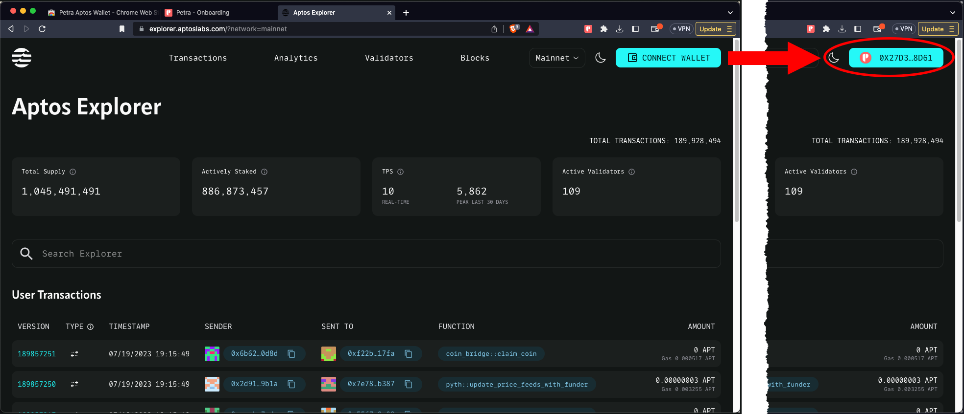 Click Connect Wallet, select Petra, and Approve the connection request.