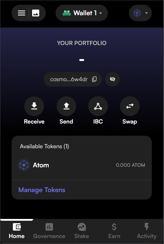 - Download the Leap Wallet extension and navigate to the extension on your browser.