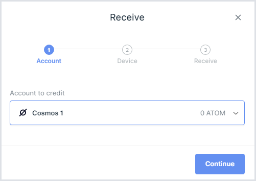 - Once the Cosmos App is installed, select Receive within Ledger Live.